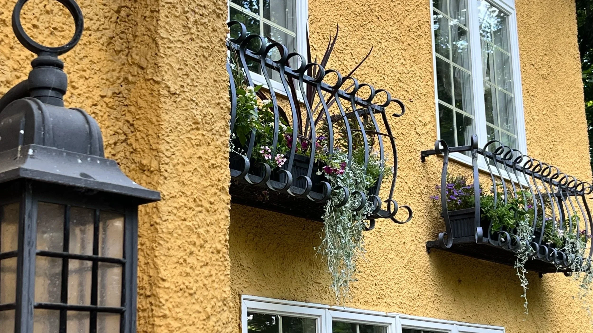 Another view (above and below), topiary with window boxes in Briarcliff Manor